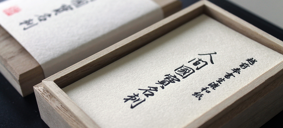 人間国宝名刺は、1500年以上の歴史のある「越前奉書」を人間国宝九代目 岩野 市兵衛氏が、丹精込めて漉いた、現在手に入る中ではこれ以上最高級なものはないという「手漉和紙」を使用した"こだわり"の名刺です。私たちは、2004年に「人間国宝名刺」の販売を開始いたしました。