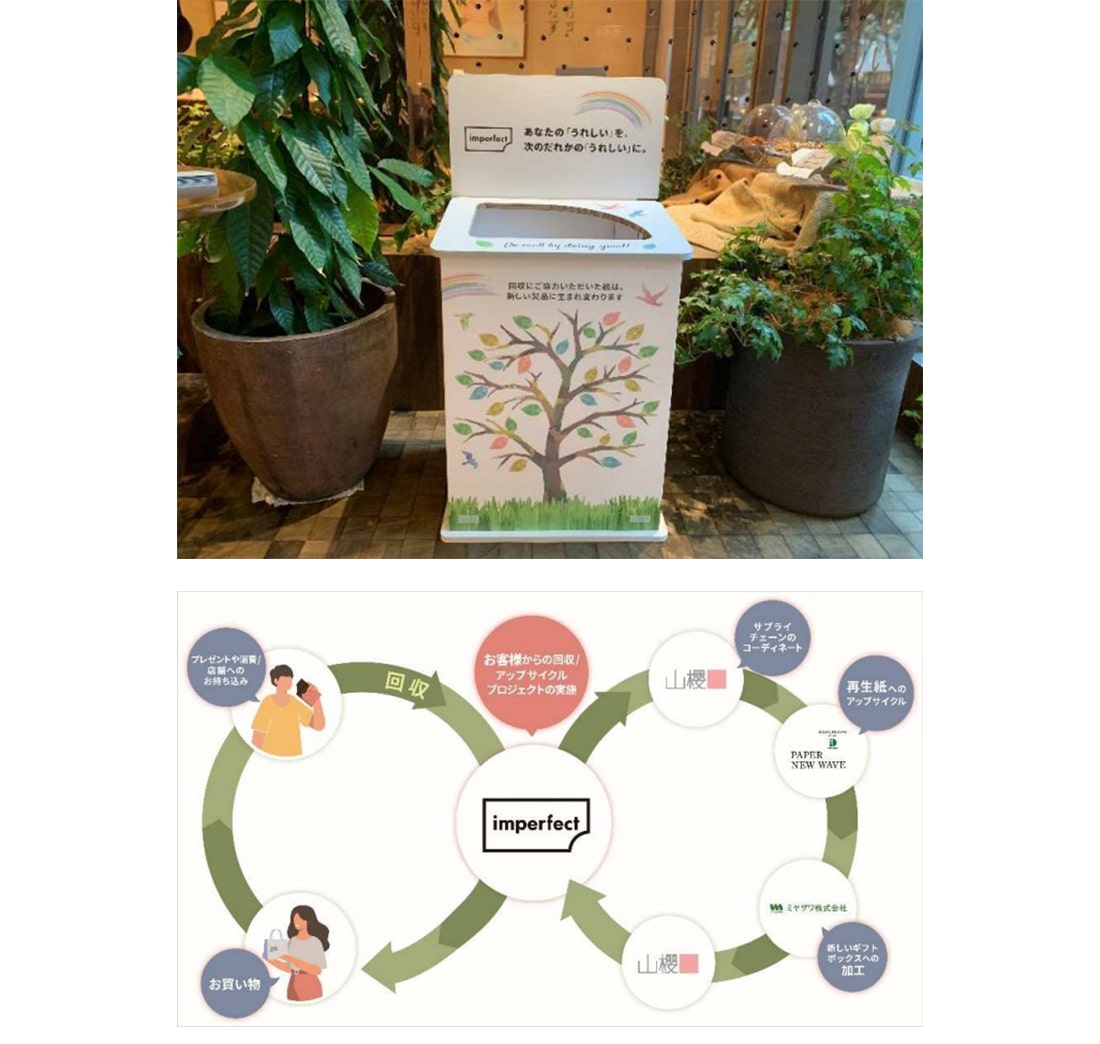 持続可能な社会の実現に向けて、社会課題の解決にお客さまと一緒に取り組む imperfect(インパーフェクト)株式会社(所在地:東京都千代田区、代表者:佐伯美紗子)と、名刺・封筒など、オフィス用事務用品を中心とした紙製品メーカーの株式会社山櫻(所在地:東京都中央区、代表取締役社⻑:市瀬豊和)は、2022年10月より、imperfect店舗で使用した紙製品のアップサイクルに向けたプロジェクトを始動します。